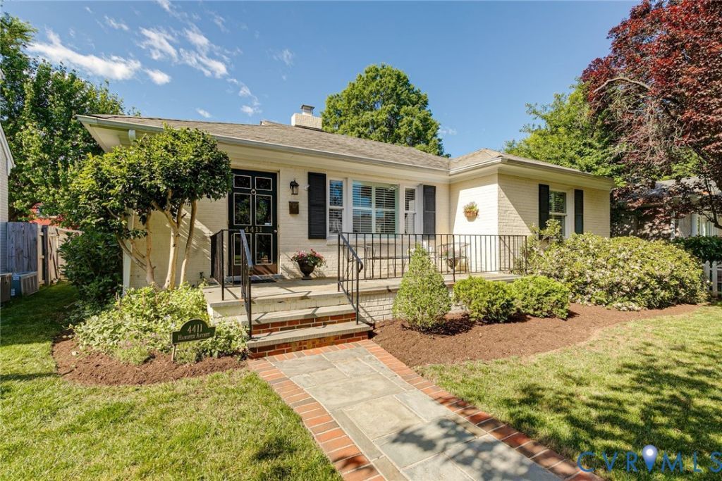 Ideally situated on the picturesque 4400 block of Hanover Avenue, this all-brick cottage offers effortless access to the Libbie and Grove corridor. This prime location places the best of the near west end-premier shops, restaurants, markets, and boutique gyms-just moments away. Further enhancing its appeal, the home is located blocks from Mary Munford Elementary in a truly vibrant neighborhood. A bluestone walkway leads to an elegant bluestone front porch, opening to an interior defined by a tranquil palette of soft blues and subtle neutrals. Gleaming oak floors and refined millwork are complemented by plantation shutters on every window. The living room features a fireplace and dual closets, connecting to a dining room with custom glass-front built-ins. Three well-proportioned bedrooms are served by a completely renovated full bathroom featuring classic finishes. The kitchen was fully renovated in 2017 with oak flooring, custom cabinetry, handmade subway tile, and granite countertops. Designed for the discerning cook, it features gas cooking, a counter-depth refrigerator, and efficient pull-out storage. Just beyond, a step-down laundry and mudroom provides substantial storage and a convenient powder room. The sunroom serves as a versatile study or retreat, opening to the rear garden and a charming screened porch that serves as an essential seasonal living room. The fully fenced backyard is wonderfully private and designed for entertaining, featuring brick patios set beneath a rustic pergola and surrounded by mature plantings and trees. The detached garage is equipped with electricity, offering valuable storage or workshop space with the potential to be returned to its original use. Recent mechanical improvements include a new heat pump and a tankless hot water system for modern efficiency. With its fresh interior and premier location, this is an inviting, move-in ready home in the heart of one of the city's most beloved neighborhoods.